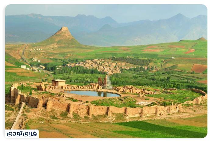 تخت سلیمان، یکی از همان جاهای دیدنی و توریستی بسیار زیبا و تاریخی است که در غرب ایران واقع شده است. این شهر قدمتی با سه هزار سال قبل، پنج دوره تاریخ و تمدن بشری را تا به این لحظه به خود دیده و از آن به عنوان زادگاه زرتشت یاد میکنند. این مجموعه عظیم شامل بخشهای مختلفی مانند حصار تخت جمشید، آتشکده آذرگشنسب، ایوان خسرو، معبد آناهیتا، راهروهای تخت سلیمان، سنگ اژدها، بناهای دوره ایلخانی، آتشگاههای کوچک و … است.